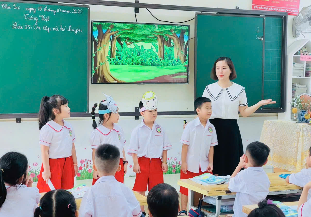 Tiết dạy do cô giáo Trần Thị Thúy – giáo viên lớp 1B thực hiện qua Bài 25: Ôn tập và kể chuyện (Tiết 2) – Câu chuyện: Chó sói và cừu non”.