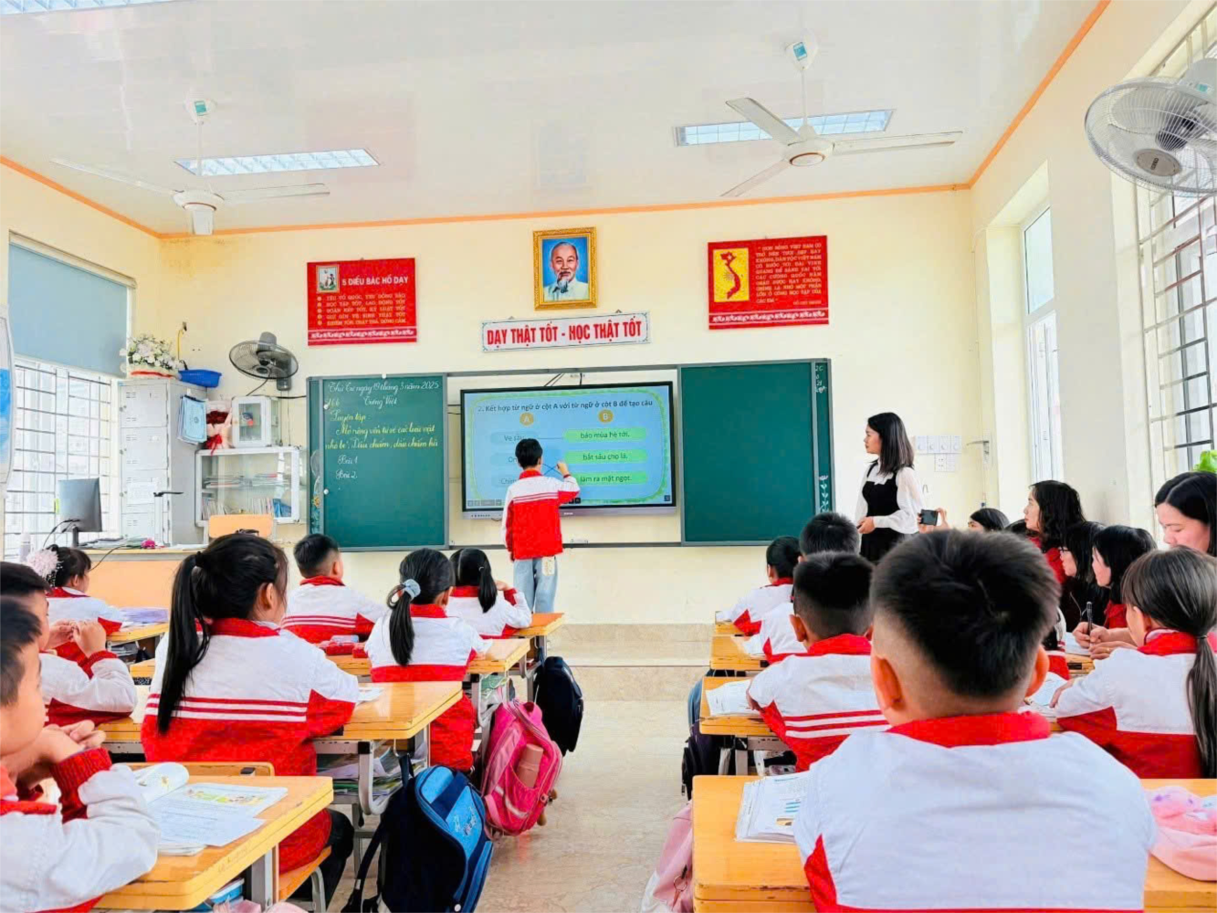 Ngày 19/ 3/ 2025, cô giáo Nguyễn Thị Minh Phương đã thực hiện chuyên đề: “VẬN DỤNG DẠY HỌC NHÓM CÓ HIỆU QUẢ VÀO MÔN TIẾNG VIỆT” đã phát huy được tính tích cực của các em trong hoạt động nhóm. Các em học sinh hào hứng với Bài “Luyện tập: Mở rộng vốn từ về các loài vật nhỏ bé; Dấu chấm, dấu chấm hỏi”. Cô giáo cũng tạo ấn tượng với các em qua công nghệ AI, các phần mềm Vidu AI, Canva, capcut.