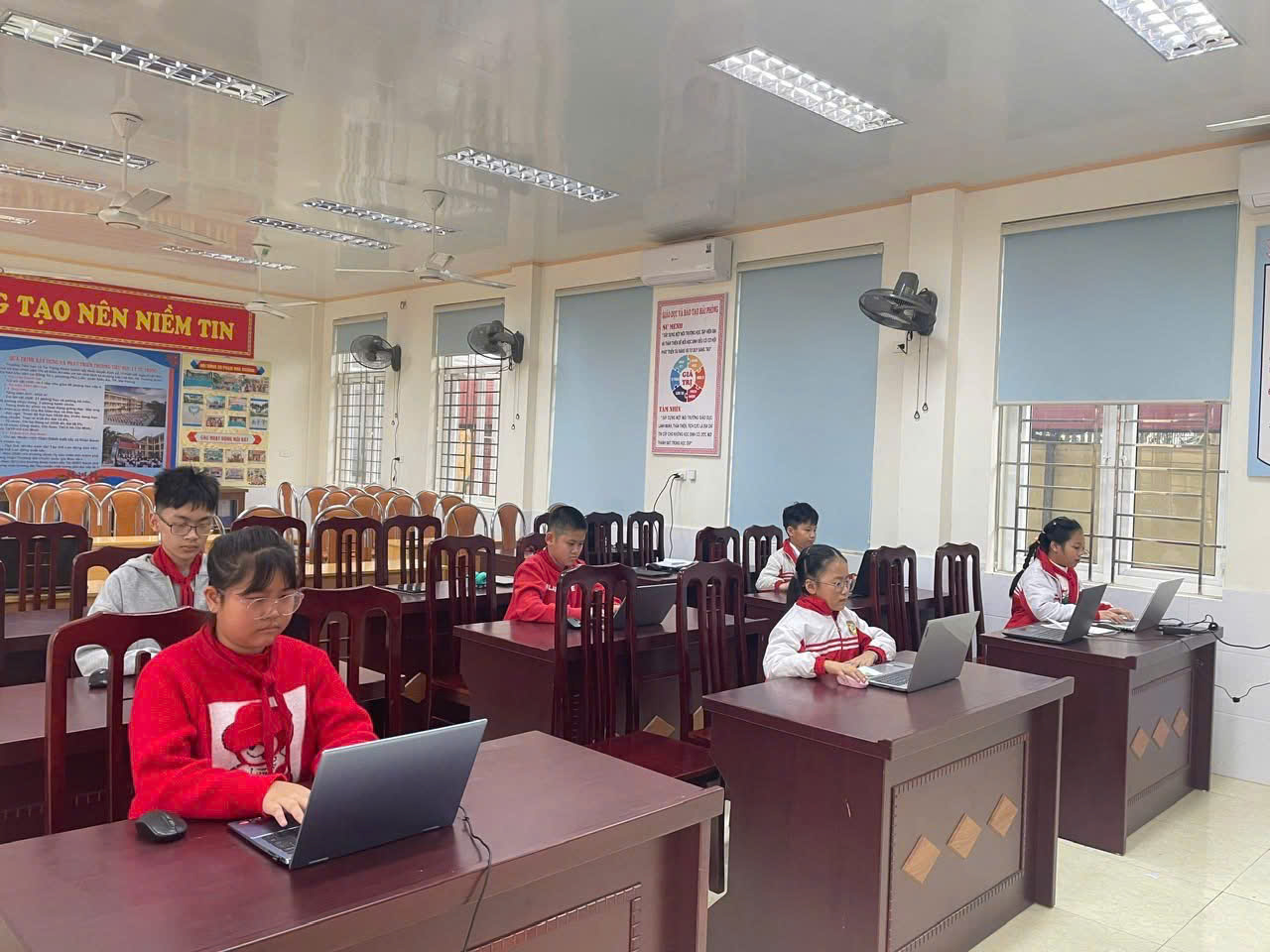 👦👧 Các bạn nhỏ không giấu được sự hồi hộp nhưng cũng đầy quyết tâm. Ai cũng tập trung cao độ, suy nghĩ nhanh chóng để đưa ra những đáp án chính xác nhất. Không khí phòng thi tràn ngập tinh thần cạnh tranh lành mạnh, nơi các em vừa thể hiện bản thân vừa tích lũy thêm kinh nghiệm quý giá.