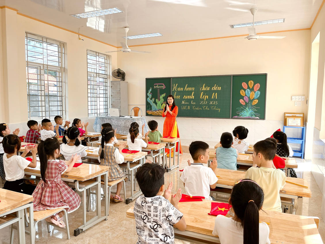 Các em học sinh Lớp 1 đang chập chững bước vào bậc học mới- bậc học Tiểu học, chắc chắn rằng buổi đầu các em sẽ bỡ ngỡ, ngập ngừng. Tuy nhiên, cảm giác ấy đã nhanh chóng tan biến mà thay vào đó là cảm giác phấn khởi và tự hào bởi hôm nay các em học sinh Lớp 1 được các thầy cô giáo tổ chức một buổi lễ đón thật trang trọng.