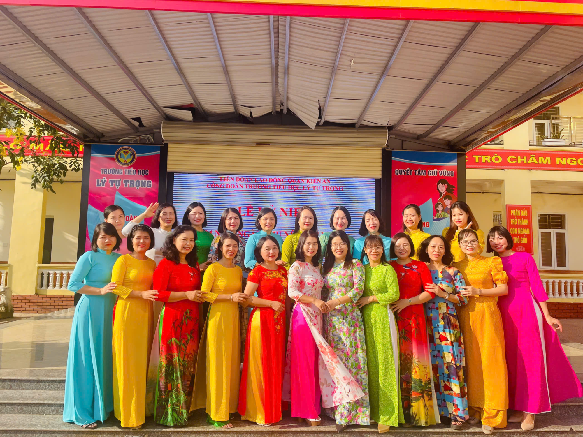 🌈🌈Thực hiện kế hoạch số 46/LĐLĐ quận Kiến An về việc tổ chức Tuần lễ áo dài Việt Nam nhân kỉ niệm 94 năm ngày phụ nữ Việt Nam, sáng nay, giáo viên Trường Tiểu học Lý Tự Trọng đã cùng nhau mặc áo dài đến trường.