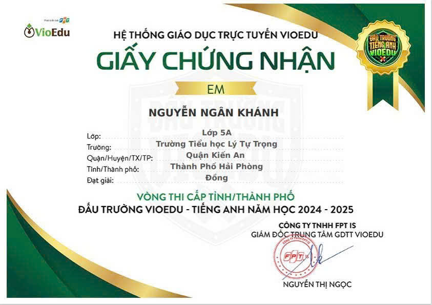 🏆 Nhà trường xin nhiệt liệt tuyên dương và chúc mừng các em học sinh đã xuất sắc đạt thành tích cao trong cuộc thi VioEdu – một sân chơi trí tuệ đầy bổ ích dành cho học sinh toàn quốc. Với tinh thần ham học hỏi, sự nỗ lực không ngừng cùng ý chí vươn lên, các em đã khẳng định được năng lực và bản lĩnh của mình qua từng vòng thi.